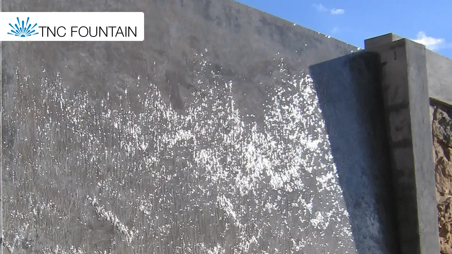 Water is directed to the vertical surface at a slight angle.